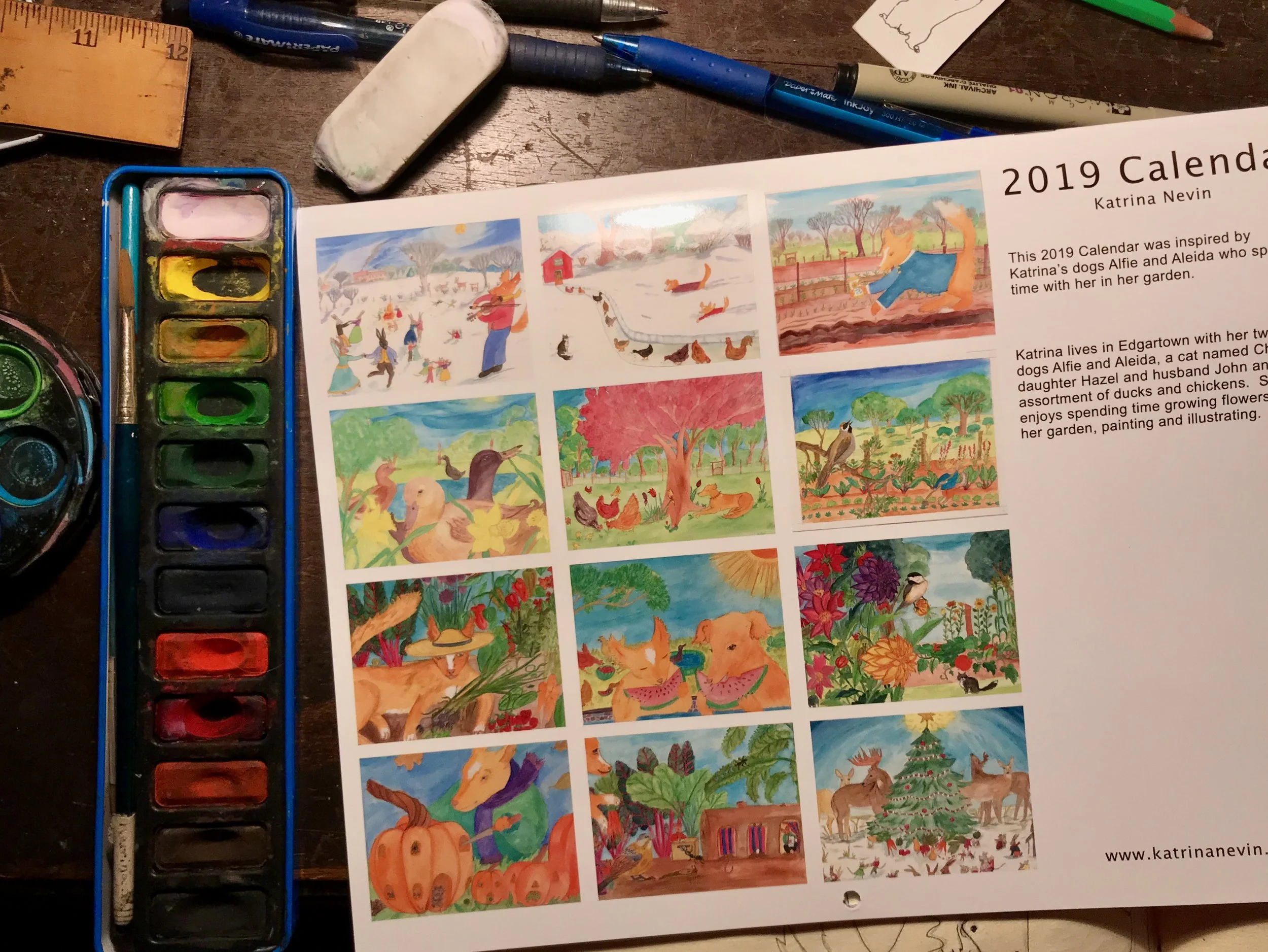 It’s done! My 2019 Calendar is a year long view of my garden with my ever helpful dogs Alfie and Aleida. This is the very first calendar available for sale..