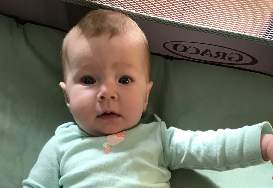 BEFORE: an example of what my baby looked like Before having her ties cut, her arched eyebrows, drawn tight upper lip and serious expression
